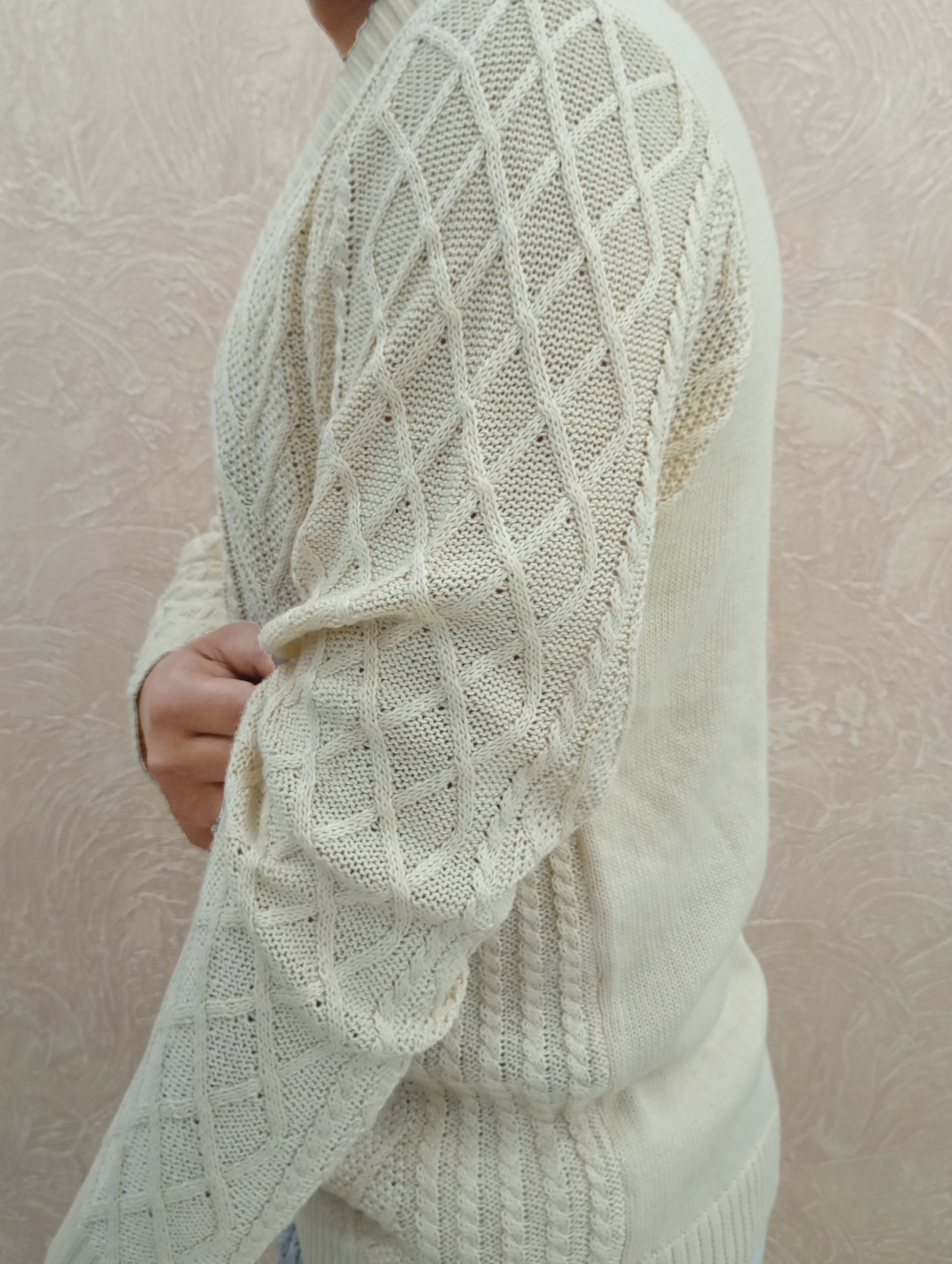 Discover winter comfort with the Stockers Cream Cable-Knit Sweater.